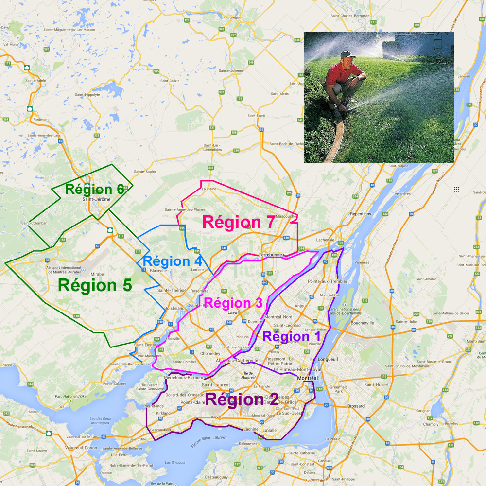 Ouverture et Vérification de systèmes d'irrigation. Service offert pour les villes suivantes: Montréal, Laval, Boisbriand, Bois-des-Filion, Blainville, Lorraine, Mirabel, Rosemère, Saint-Eustache, Saint-Jérôme, Terrebonne